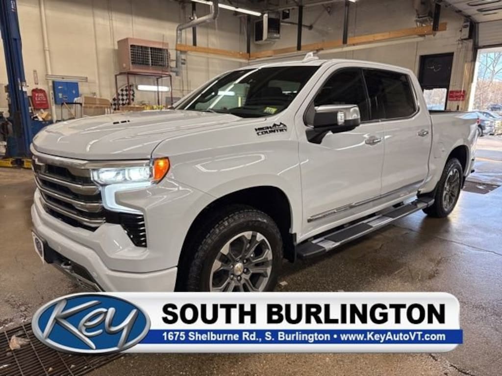 Key Chevrolet Burlington is proud to present you with another True Market Priced Vehicle. This 2026 Chevrolet Silverado 1500 High Country is loaded with the following Factory Options: 10-Speed Automatic, 4WD, and Black Leather Dark Essentials Package (Black Name Plates and Front Black Bowtie Emblem), High Capacity Suspension Package, Preferred Equipment Group 3LZ (10-Way Power Driver Seat with Lumbar, 10-Way Power Passenger Seat Adjuster with Lumbar, 12.3 Multicolor Reconfigurable Digital Display, 120-Volt Bed Mounted Power Outlet, 120-Volt Interior Power Outlet, 2 USB Data Ports, 2nd Row Heated Outboard Seats, Adaptive Cruise Control, Auto-Dimming Inside Rear-View Mirror, Auto-Locking Rear Differential, Bed View Camera, Bluetooth® For Phone, Chevytec Spray-on Black Bedliner, Chrome Assist Steps, Chrome Recovery Hooks, Color-Keyed Carpeting Floor Covering, Deep-Tinted Glass, Driver Memory, Dual Exhaust with Polished Outlets, Dual Rear USB Ports (charge Only), Electric Rear-Window Defogger, Floor Mounted Center Console, Front Bucket Seats, Front Carpeted Floor Mats, Front LED Fog Lamps, Front Rain-Sensing Wipers, Galvano Silver Painted Mirror Caps, HD Surround Vision, Heated Driver and Front Outboard Passenger Seats, Heated Steering Wheel, Hitch Guidance with Hitch View, in-Vehicle Trailering System App, Integrated Trailer Brake Controller, Keyless Open and Start, LED Cargo Area Lighting, OnStar Services Capable, Outside Heated Power-Adjustable Mirrors, Perforated Leather Seat Trim, Perimeter Lighting, Power Front Passenger Windows with Express Up/Down, Power Front Windows with Driver Express Up/Down, Power Rear Windows with Express Down, Power Sliding Rear Window with Rear Defogger, Power Tailgate, Power Tilt and Telescoping Steering Column, Rear Carpeted Floor Mats, Rear Cross Traffic Braking, Rear Pedestrian Alert, Rear Wheelhouse Liners, Remote Vehicle Starter System, Safety Alert Seat, SiriusXM with 360L Trial Subscription, Standard Tailgate, Steering Wheel Audio Controls, Teen Driver, Theft Deterrent System (unauthorized Entry), Tire Pressure Monitoring System, Trailer Camera Provisions, Trailer Side Blind Zone Alert, Ultrasonic Front and Rear Park Assist, Universal Home Remote, Ventilated Driver and Front Passenger Seats, Wheels: 20 x 9 Painted Aluminum, Wi-Fi Hot Spot Capable, and Wrapped Steering Wheel), Technology Package (15 Diagonal Multicolor Head-Up Display and Rear Camera Mirror), Trailering Package (Hitch Guidance), Up-Level Rear Seat with Storage Package, Z71 Off-Road Package (Heavy-Duty Air Filter, Hill Descent Control, and Off-Road Suspension), 10-Speed Automatic, 4WD, Black Leather, 170 Amp Alternator, 3.23 Rear Axle Ratio, 4-Wheel Disc Brakes, 7 Speakers, ABS brakes, Air Conditioning, All-Weather Floor Liner, Alloy wheels, AM/FM radio: SiriusXM with 360L, Apple CarPlay/Android Auto, Auto High-beam Headlights, Auto-dimming door mirrors, Auto-dimming Rear-View mirror, Automatic temperature control, Black Tailgate CHEVROLET Lettering, Bodyside moldings, Brake assist, Bumpers: body-color, Compass, Delay-off headlights, Driver door bin, Driver vanity mirror, Dual Active Exhaust, Dual front impact airbags, Dual front side impact airbags, Electronic Stability Control, Electronic Transmission Range Selector Shifter, Emergency communication system: OnStar, Enhanced Automatic Emergency Braking, Following Distance Indicator, Forward Collision Alert, Front anti-roll bar, Front Center Armres