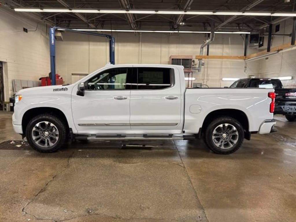 Polar White Tricoat 2026 Chevrolet Silverado 1500 High Country 4WD 10-Speed Automatic EcoTec3 6.2L V8 10-Speed Automatic, 4WD, Black Leather.