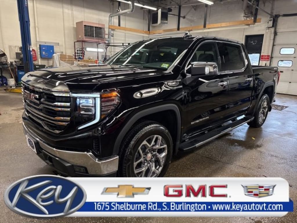 Key Chevrolet Burlington is proud to present you with another True Market Priced Vehicle. This 2026 GMC Sierra 1500 SLT is loaded with the following Factory Options: 10-Speed Automatic, 4WD, and Jet Black Leather High Capacity Suspension Package, Preferred Equipment Group 4SA (120-Volt Bed Mounted Power Outlet, 120-Volt Interior Power Outlet, 170 Amp Alternator, 2 Charge/Data USB Ports, 2 Type-C Charge-Only Rear USB Ports, 6-Speaker Audio System Feature, Auto-Locking Rear Differential, Auxiliary External Transmission Oil Cooler, Chrome Header & Chrome Grille Insert Bars, Color-Keyed Carpeting Floor Covering, Deep-Tinted Glass, Electric Rear-Window Defogger, Front Frame-Mounted Black Recovery Hooks, Front Rain-Sensing Wipers, HD Rear Vision Camera, Integrated Trailer Brake Controller, Keyless Open & Start, LED Cargo Area Lighting, Manual Tilt-Wheel & Telescoping Steering Column, OnStar Services Capable, Perimeter Lighting, Power Door Locks, Power Front Passenger Windows w/Express Up/Down, Power Front Windows w/Driver Express Up/Down, Power Rear Windows w/Express Down, Push Button Start, Rear Wheelhouse Liners, Remote Vehicle Starter System, SiriusXM w/360L Trial Subscription, Steering Wheel Audio Controls, Theft Deterrent System (Unauthorized Entry), and Wi-Fi Hotspot Capable), SLT Convenience Package (2 Charge/Data USB Ports Inside Center Console, Electronic Precision Shift, Floor-Mounted Center Console, Front Bucket Seats, Power Rake & Telescoping Steering Column, Premium Bose 7-Speaker Sound System, Ventilated Driver & Front Passenger Seats, and Wireless Charging), SLT Preferred Package (Adaptive Cruise Control, Heated 2nd Row Outboard Seats, Power Sliding Rear Window w/Rear Defogger, and Universal Home Remote), SLT Premium Package (20 Polished Aluminum Wheels and Chrome Wheel To Wheel Assist Steps), Standard Suspension Package, Trailering Package (Hitch Guidance), 10-Speed Automatic, 4WD, Jet Black Leather, 10-Way Power Driver Seat Adjuster w/Lumbar, 10-Way Power Passenger Seat Adjuster w/Lumbar, 3.23 Rear Axle Ratio, 4-Wheel Disc Brakes, 6 Speakers, ABS brakes, Air Conditioning, Alloy wheels, AM/FM radio: SiriusXM with 360L, Apple CarPlay/Android Auto, Auto High-beam Headlights, Auto-dimming door mirrors, Auto-dimming Rear-View mirror, Automatic Emergency Braking, Automatic temperature control, Brake assist, Buckle to Drive, Bumpers: chrome, Compass, Delay-off headlights, Driver door bin, Driver Memory, Driver vanity mirror, Dual front impact airbags, Dual front side impact airbags, Electronic Stability Control, Emergency communication system: OnStar, Following Distance Indicator, Forward Collision Alert, Front 40/20/40 Split-Bench Seat, Front anti-roll bar, Front Center Armrest w/Storage, Front dual zone A/C, Front fog lights, Front License Plate Kit, Front Pedestrian Braking, Front reading lights, Front wheel independent suspension, Fully automatic headlights, Heated door mirrors, Heated Driver & Front Outboard Passenger Seating, Heated front seats, Heated steering wheel, Illuminated entry, IntelliBeam Automatic High Beam On/Off, Lane Keep Assist w/Lane Departure Warning, Low tire pressure warning, Memory seat, Navigation System, Occupant sensing airbag, Outside temperature display, Overhead airbag, Overhead console, Panic alarm, Passenger door bin, Passenger vanity mirror, Perf Leather-Appointed Front Outboard Seat Trim, Power door mirrors, Power driver seat, Power passenger seat, Power steering, Power Sunroof, Po