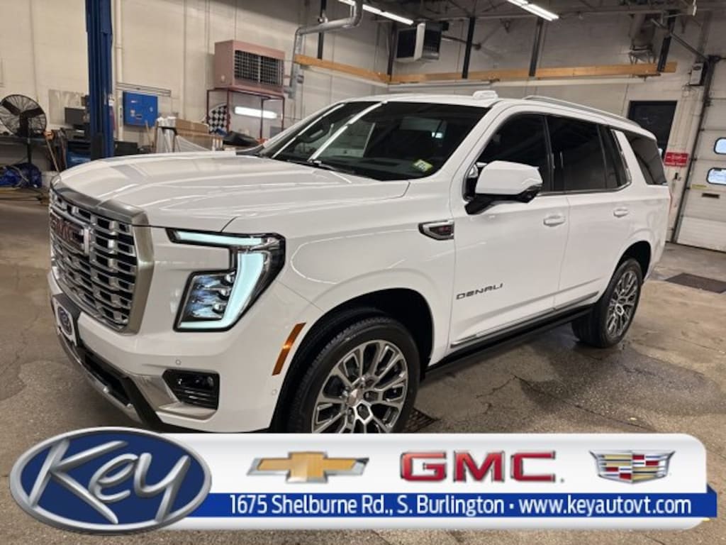 Key Chevrolet Burlington is proud to present you with another True Market Priced Vehicle. This 2026 GMC Yukon Denali is loaded with the following Factory Options: 4WD Advanced Security Package (Glass Breakage Sensor, Theft-Deterrent Alarm System, Vehicle Inclination Sensor, and Vehicle Interior Movement Sensor), Advanced Technology Package (3 Years OnStar One, Driver Attention Assist, Inside Rearview Auo-Dimming Rear Camera Mirror, Rear Seat Media System, and Super Cruise), Denali Reserve Package (Dual-Pane Panoramic Power Sunroof and Power-Retractable Assist Steps), Enhanced Trailering Technology Package (Trailer Camera Provisions, Trailering Assist Guidelines, and Wired Auxiliary Trailer Camera), License Plate Front Mounting Package, Max Trailering Package (Blind Zone Steering Assist with Trailering, Extra Capacity Cooling System, Hill Descent Control, Hitch View, Integrated Trailer Brake Controller, and Smart Trailer Integration Indicator), Preferred Equipment Group 5SA (15 Diagonal Multi-Color Head-Up Display, 4-Way Power Driver Lumbar Seat Adjuster, 4-Way Power Front Passenger Lumbar Seat Adjuster, AutoSense Hands-Free Power Liftgate, Bright Front and Rear Door Sill Plates, Dual Exhaust System, Galvano Bodyside Moldings, Magnetic Ride Control Suspension, Perforated Heather and Ventilated Driver and Front Passenger Seats, Power Release 2nd Row Bucket Seats, Power Tilt and Telescopic Steering Column, and Wheels: 20 x 9 6-Spoke Polished Aluminum), 4WD, 10 Speakers, 3.23 Rear Axle Ratio, 3rd row seats: split-bench, 4-Wheel Disc Brakes, ABS brakes, Adaptive suspension, Air Conditioning, Alloy wheels, AM/FM radio: SiriusXM with 360L, Apple CarPlay/Android Auto, Audio memory, Auto High-beam Headlights, Auto-dimming door mirrors, Auto-dimming Rear-View mirror, Auto-leveling suspension, Automatic temperature control, Bodyside moldings, Bose 10-Speaker Surround with CenterPoint, Brake assist, Bumpers: body-color, Compass, Delay-off headlights, Driver door bin, Driver vanity mirror, Dual front impact airbags, Dual front side impact airbags, Electronic Stability Control, Emergency communication system: OnStar and GMC connected services capable, Exterior Parking Camera Rear, Four wheel independent suspension, Front anti-roll bar, Front Bucket Seats, Front Center Armrest, Front dual zone A/C, Front fog lights, Front reading lights, Fully automatic headlights, Garage door transmitter, Heads-Up Display, Heated door mirrors, Heated Driver and Front Passenger Seats, Heated front seats, Heated rear seats, Heated steering wheel, Illuminated entry, Low tire pressure warning, Memory seat, Navigation system: GMC Connected Navigation, Occupant sensing airbag, Outside temperature display, Overhead airbag, Overhead console, Panic alarm, Passenger door bin, Passenger vanity mirror, Perforated Leather Seating Surfaces, Power door mirrors, Power driver seat, Power Liftgate, Power passenger seat, Power steering, Power windows, Radio: 16.8 Diagonal Premium GMC Infotainment System, Rain sensing wipers, Rear air conditioning, Rear anti-roll bar, Rear reading lights, Rear window defroster, Rear window wiper, Remote keyless entry, Security system, SiriusXM with 360L, Speed control, Speed-sensing steering, Split folding rear seat, Spoiler, Steering wheel memory, Steering wheel mounted audio controls, Tachometer, Telescoping steering wheel, Tilt steering wheel, Traction control, Trip computer, Turn signal indicator mirrors, Variably intermittent wipers, Ventilated front seats,