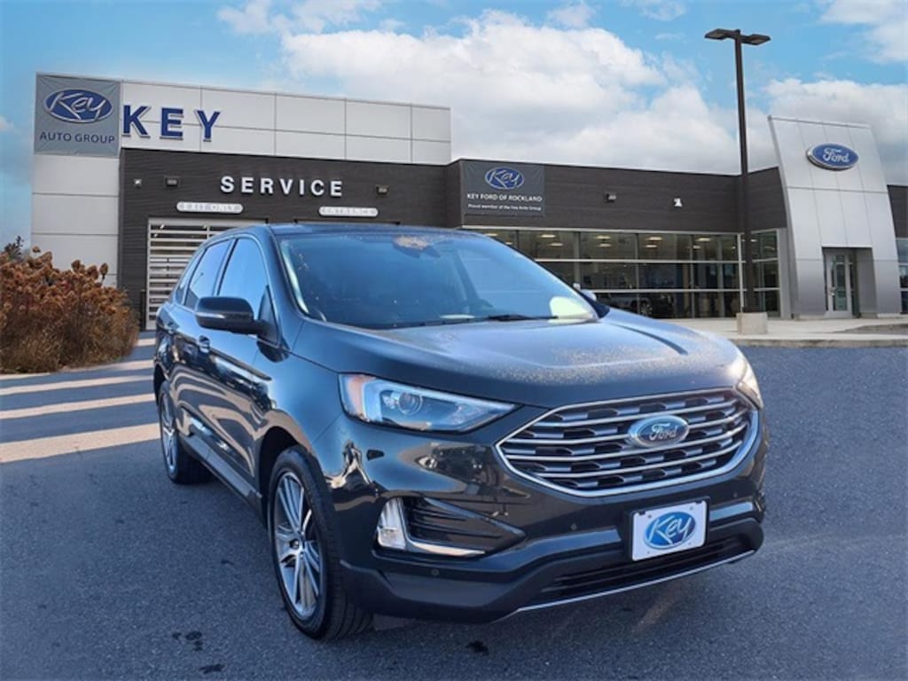 Key Ford of Rockland is proud to present you with another True Market Priced Pre-Owned Vehicle. Transparent Pricing Of $ 26381 !! This 2022 Ford Edge Titanium is loaded with the following Factory Options: AWD Equipment Group 300A, AWD, 12 Speakers, 3.80 Axle Ratio, 4-Wheel Disc Brakes, ABS brakes, Air Conditioning, Alloy wheels, AM/FM radio: SiriusXM with 360L, Auto High-beam Headlights, Auto-dimming Rear-View mirror, Automatic temperature control, B&O Sound System by Bang & Olufsen, Brake assist, Bumpers: body-color, Compass, Delay-off headlights, Driver door bin, Driver vanity mirror, Dual front impact airbags, Dual front side impact airbags, Electronic Stability Control, Emergency communication system: SYNC 4 911 Assist, FordPass Connect, Four wheel independent suspension, Front & Rear Floor Liners w/o Carpet Mats, Front anti-roll bar, Front Bucket Seats, Front Center Armrest w/Storage, Front dual zone A/C, Front fog lights, Front reading lights, Fully automatic headlights, Garage door transmitter, Heated door mirrors, Heated front seats, Heated steering wheel, Illuminated entry, Knee airbag, Leather-Trimmed Heated Sport Bucket Seats, Low tire pressure warning, Memory seat, Occupant sensing airbag, Outside temperature display, Overhead airbag, Overhead console, Panic alarm, Panoramic Vista ROOF, Passenger door bin, Passenger vanity mirror, Power door mirrors, Power driver seat, Power Liftgate, Power passenger seat, Power steering, Power windows, Rain sensing wipers, Rear anti-roll bar, Rear reading lights, Rear seat center armrest, Rear window defroster, Rear window wiper, Remote keyless entry, Security system, SiriusXM w/360L, Speed control, Speed-Sensitive Wipers, Split folding rear seat, Spoiler, Steering wheel mounted audio controls, SYNC 4A w/Enhanced Voice Recognition, Tachometer, Telescoping steering wheel, Tilt steering wheel, Traction control, Trip computer, Turn signal indicator mirrors, Variably intermittent wipers, Wheels: 19" Luster Nickel-Painted Aluminum, and Wheels: 20" Bright-Machined Aluminum!!