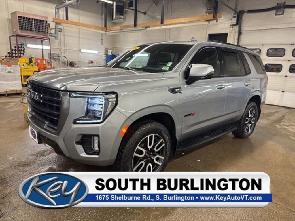 Key Chevrolet Burlington is proud to present you with another True Market Priced Pre-Owned Vehicle. Transparent Pricing Of $ 67296 !! This 2024 GMC Yukon AT4 is loaded with the following Factory Options: 4WD Floor Liner Package (LPO) (1st & 2nd Rows Premium Floor Liners (LPO), 3rd Row All-Weather Floor Liners (LPO), and All-Weather Cargo Mat (LPO)), License Plate Front Mounting Package, Preferred Equipment Group 4SB (12-Way Power Seat Adjusters, 2 Presets For Outside Rearview Mirrors, 3rd Row 60/40 Power-Folding Split-Bench Seat, Black Roof-Mounted Luggage Rack Side Rails, Bose 9-Speaker Stereo Audio System Feature, Bright Front & Rear Door Sill Plates, Front High-Approach Angle Fascia, Hands-Free Power Programmable Rear Liftgate, Heated 2nd Row Outboard Position Seats, Heated Driver & Front Passenger Seats, Heated Steering Wheel, Heavy-Duty Air Filter, Hill Descent Control, Inside Rear-View Auto-Dimming Mirror, Outside Heated Power-Adjustable Mirrors, Perforated Heated & Ventilated Dr & Frt Pass Seats, Power Release 2nd Row 60/40 Split-Folding Bench Seat, Power Tilt & Telescopic Steering Column, Red Horizontal-Mounted Recovery Hooks, Safety Alert Seat, Universal Home Remote, and Wireless Charging), Technology Package (15 Diagonal Multi-Color Head-Up Display, HD Surround Vision, and Rear Pedestrian Alert), 4WD, 3.23 Rear Axle Ratio, 3rd row seats: split-bench, 4-Wheel Disc Brakes, 9 Speakers, ABS brakes, Adaptive suspension, Air Conditioning, Alloy wheels, AM/FM radio: SiriusXM with 360L, AM/FM Stereo, Apple CarPlay/Android Auto, Auto High-beam Headlights, Auto-dimming door mirrors, Auto-dimming Rear-View mirror, Automatic Emergency Braking, Automatic temperature control, Brake assist, Bumpers: body-color, Compass, Delay-off headlights, Driver door bin, Driver vanity mirror, Dual front impact airbags, Dual front side impact airbags, Dual-Pane Panoramic Power Sunroof, Electronic Stability Control, Emergency communication system: OnStar and GMC connected services capable, Following Distance Indicator, Forward Collision Alert, Four wheel independent suspension, Front & Rear Park Assist, Front anti-roll bar, Front Bucket Seats, Front Center Armrest, Front dual zone A/C, Front fog lights, Front Pedestrian Braking, Front reading lights, Fully automatic headlights, Garage door transmitter, Heated door mirrors, Heated front seats, Heated rear seats, Heated steering wheel, Illuminated entry, IntelliBeam Automatic High Beam On/Off, Lane Change Alert w/Side Blind Zone Alert, Lane Keep Assist w/Lane Departure Warning, Low tire pressure warning, Magnetic Ride Control Suspension, Memory seat, Molded Splash Guards, Navigation System, Occupant sensing airbag, Outside temperature display, Overhead airbag, Overhead console, Panic alarm, Passenger door bin, Passenger vanity mirror, Perforated Leather Seating Surfaces, Power door mirrors, Power driver seat, Power Liftgate, Power passenger seat, Power Release 2nd Row Bucket Seats, Power steering, Power windows, Rain sensing wipers, Rear air conditioning, Rear anti-roll bar, Rear Cross Traffic Alert, Rear reading lights, Rear seat center armrest, Rear window defroster, Rear window wiper, Remote keyless entry, Roof rack: rails only, Security system, SiriusXM w/360L, Speed control, Speed-sensing steering, Split folding rear seat, Spoiler, Steering wheel memory, Steering wheel mounted audio controls, Tachometer, Telescoping steering whee