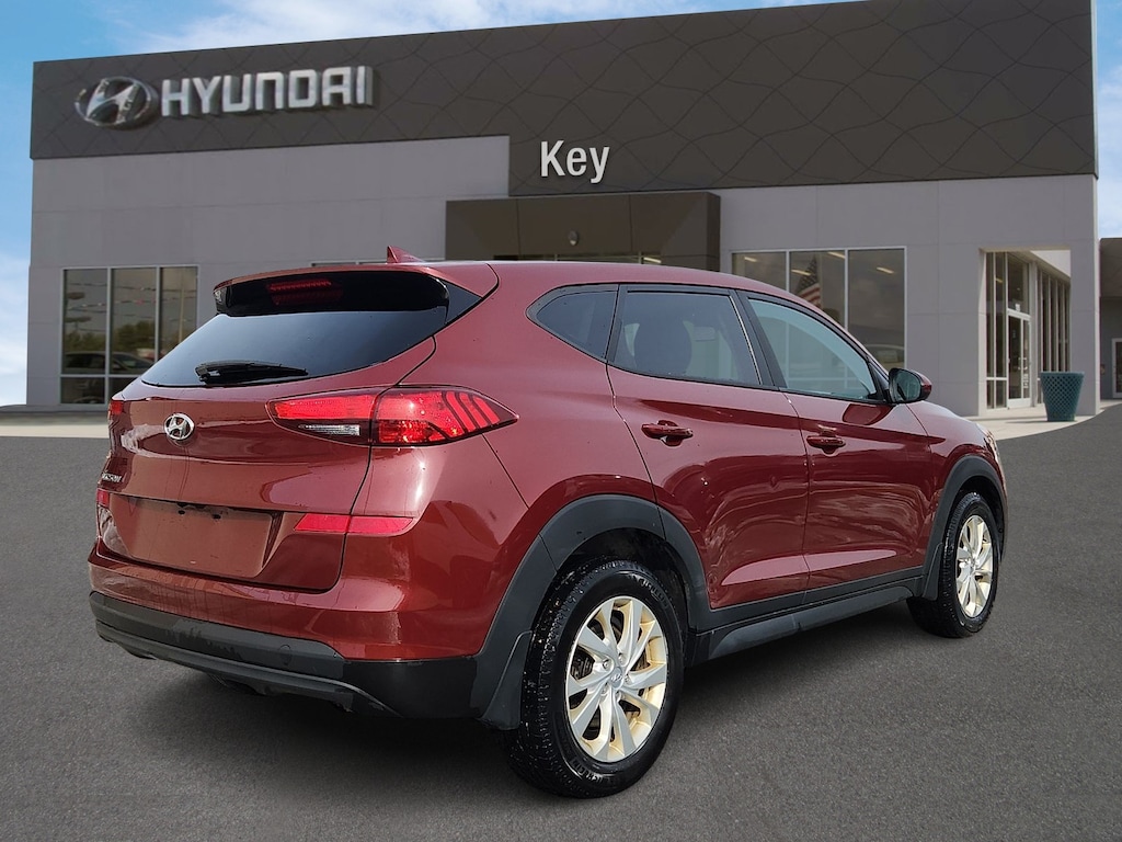 "1-Owner Clean CARFAX Apple CarPlay & Android Auto.This Tucson SE is nicely equipped with Apple CarPlay & Android Auto 17""x 7.0J Alloy Wheels 4-Wheel Disc Brakes 6 Speakers ABS brakes Air Conditioning AM/FM radio Brake assist Bumpers: body-color Cargo Net Carpeted Floor Mats Delay-off headlights Driver door bin Driver vanity mirror Dual front impact airbags Dual front side impact airbags Electronic Stability Control Exterior Parking Camera Rear First Aid Kit Four wheel independent suspension Front anti-roll bar Front Bucket Seats Front Center Armrest Front reading lights Fully automatic headlights Illuminated entry Low tire pressure warning Mudguards Occupant sensing airbag Outside temperature display Overhead airbag Overhead console Panic alarm Passenger door bin Passenger vanity mirror Power door mirrors Power steering Power windows Radio: AM/FM Audio System Rear anti-roll bar Rear seat center armrest Rear window defroster Rear window wiper Remote keyless entry Reversible Cargo Tray Security system Speed control Speed-sensing steering Split folding rear seat Spoiler Steering wheel mounted audio controls Tachometer Telescoping steering wheel Tilt steering wheel Traction control Trip computer Variably intermittent wipers and YES Essentials Cloth Seat Trim.CARFAX One-Owner. Clean CARFAX.2019 Hyundai Tucson SE 4D Sport Utility Gemstone Red SE I4 6-Speed Automatic with Shiftronic FWDCall 603-841-3099 to schedule your contact free test drive today!"