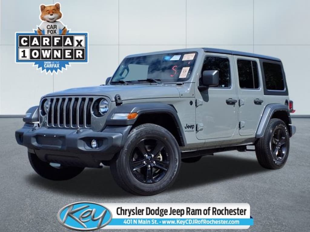 Key Chrysler Dodge Jeep Ram of Rochester is proud to present you with another True Market Priced Pre-Owned Vehicle. Transparent Pricing Of $ 25635 !! This 2021 Jeep Wrangler Unlimited Sport Altitude is loaded with the following Factory Options: Altitude Package, Cold Weather Group (Heated Front Seats and Heated Steering Wheel), Convenience Group (Universal Garage Door Opener), Quick Order Package 22L Altitude (Automatic Headlamps, Black 3-Piece Hard Top, Black Interior Accents, Black Trail Rated Badge, Body Color Grille w/Gloss Black Rings, Deep Tint Sunscreen Windows, Freedom Panel Storage Bag, Front 1-Touch Down Power Windows, Heavy Duty Suspension w/Gas Shocks, Leather Wrapped Steering Wheel, Matte Black Jeep Badge, MOPAR Hardtop Headliner, No Soft Top, Power Heated Mirrors, Rear Window Defroster, Rear Window Wiper/Washer, Remote Keyless Entry, Security Alarm, Speed Sensitive Power Locks, Sun Visors w/Illuminated Vanity Mirrors, Wheels: 18" x 7.5" Gloss Black Aluminum, Wizard Black Instrument Panel Bezels, and Wrangler Decal), Technology Group (7.0" Touchscreen Display, Air Conditioning w/Auto Temperature Control, Air Filtering, Apple CarPlay, Cluster 7.0" TFT Color Display, For More Info, Call 800-643-2112, Google Android Auto, GPS Antenna Input, Integrated Center Stack Radio, Radio: Uconnect 4 w/7" Display, SiriusXM Radio Service, SiriusXM Satellite Radio, and USB Host Flip), 3.45 Rear Axle Ratio, 4-Wheel Disc Brakes, 8 Speakers, ABS brakes, Air Conditioning, AM/FM radio, Aux Battery, Brake assist, Cloth Low-Back Bucket Seats, Compass, Continental TPM Sensor (DISC), Delay-off headlights, Driver door bin, Driver vanity mirror, Dual front impact airbags, Dual front side impact airbags, Electronic Stability Control, Front anti-roll bar, Front Bucket Seats, Front Center Armrest w/Storage, Front fog lights, Front reading lights, Integrated roll-over protection, Low tire pressure warning, Manufacturer's Statement of Origin, Non-Lock Fuel Cap w/o Discriminator, Normal Duty Suspension, Occupant sensing airbag, Outside temperature display, ParkView Rear Back-Up Camera, Passenger door bin, Passenger vanity mirror, Power steering, Radio data system, Radio: Uconnect 3 w/5" Display, Rear anti-roll bar, Rear reading lights, Selec-Speed Control, Speed control, Split folding rear seat, Steering wheel mounted audio controls, Stop-Start Dual Battery System, Tachometer, Telescoping steering wheel, Tilt steering wheel, Traction control, Trip computer, Variably intermittent wipers, and Wheels: 17" x 7.5" Black Steel Styled!!