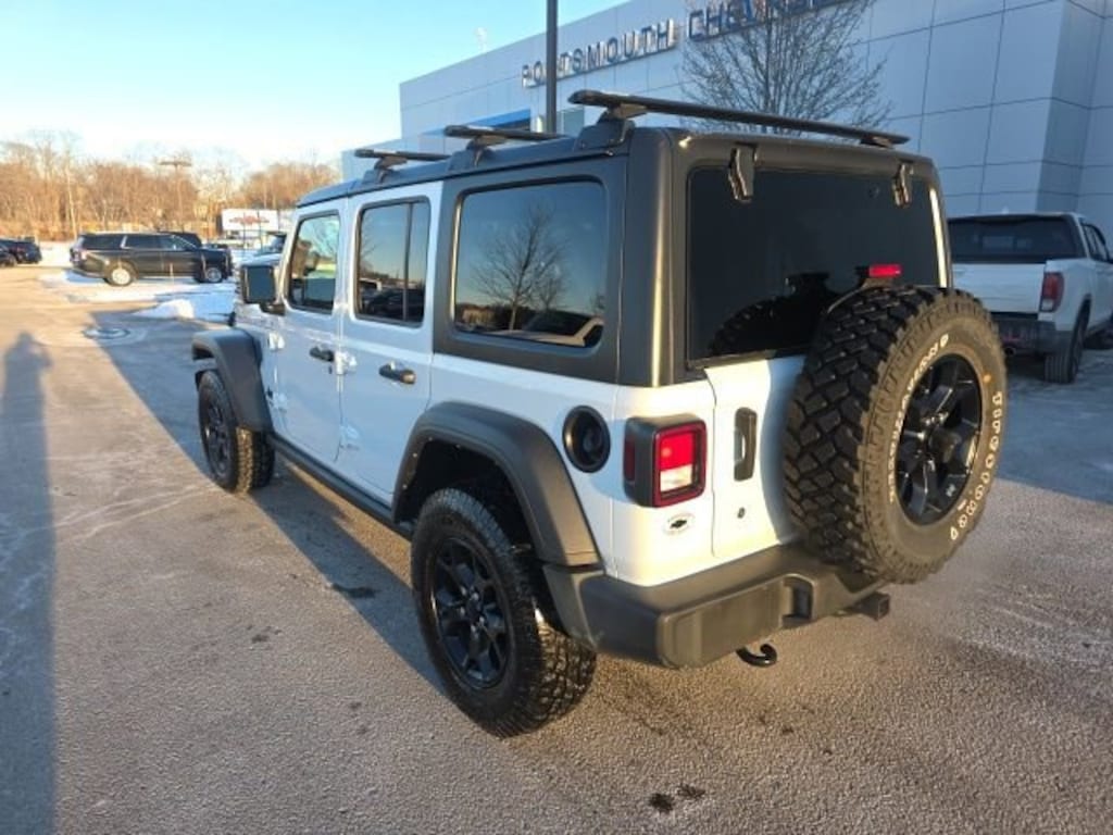 Portsmouth Chevrolet is proud to present you with another True Market Priced Pre-Owned Vehicle. Transparent Pricing Of $ 25671 !! This 2021 Jeep Wrangler Unlimited Willys is loaded with the following Factory Options: Quick Order Package 23K Willys Sport (4-Wheel Drive Swing Gate Decal, Anti-Spin Differential Rear Axle, Black Grille, Black Trail Rated Badge, Deep Tint Sunscreen Windows, Matte Black Jeep Badge, Mold In Color Bumper w/Gloss Black, Wheels: 17 x 7.5 Moab Black Aluminum, Willys, Willys Hood Decal, and Wrangler Decal), 3.45 Rear Axle Ratio, 4-Wheel Disc Brakes, 8 Speakers, ABS brakes, Air Conditioning, AM/FM radio, Aux Battery, Brake assist, Cloth Low-Back Bucket Seats, Compass, Delay-off headlights, Driver door bin, Driver vanity mirror, Dual front impact airbags, Dual front side impact airbags, Electronic Stability Control, Front anti-roll bar, Front Bucket Seats, Front Center Armrest w/Storage, Front fog lights, Front reading lights, Integrated roll-over protection, Low tire pressure warning, MOPAR All-Weather Floor Mats (DISC), Non-Lock Fuel Cap w/o Discriminator, Normal Duty Suspension, Occupant sensing airbag, Outside temperature display, ParkView Rear Back-Up Camera, Passenger door bin, Passenger vanity mirror, Power steering, Radio data system, Radio: Uconnect 3 w/5 Display, Rear anti-roll bar, Rear reading lights, Speed control, Split folding rear seat, Steering wheel mounted audio controls, Stop-Start Dual Battery System, Tachometer, Telescoping steering wheel, Tilt steering wheel, Traction control, Trip computer, Variably intermittent wipers, and Wheels: 17 x 7.5 Black Steel Styled!!