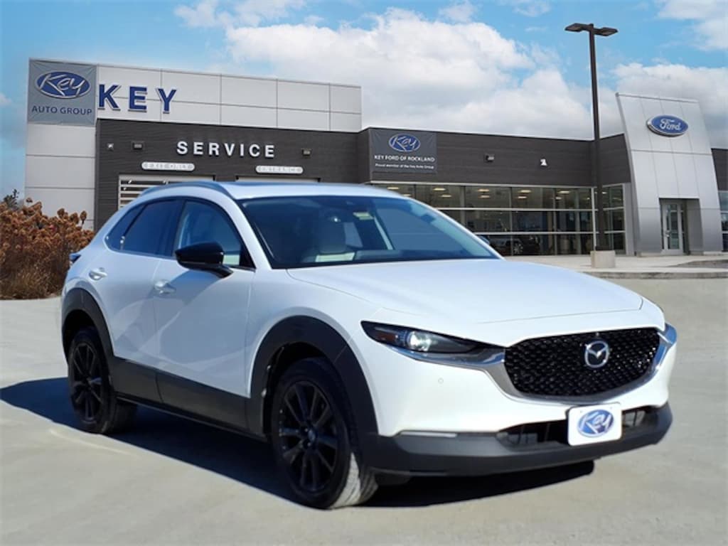 Key Ford of Rockland is proud to present you with another True Market Priced Pre-Owned Vehicle. Transparent Pricing Of $ 17999 !! This 2021 Mazda CX-30 2.5 Turbo w/Premium Plus Package is loaded with the following Factory Options: Turbo Premium Plus Package, Heated front seats, NAVIGATION System, Power Liftgate, and Power moonroof Turbo Premium Plus Package, Heated front seats, NAVIGATION System, Power Liftgate, Power moonroof, 12 Speakers, 3.841 Axle Ratio, 4-Wheel Disc Brakes, ABS brakes, Air Conditioning, Alloy wheels, AM/FM radio: SiriusXM, AppLink/Apple CarPlay and Android Auto, Auto High-beam Headlights, Auto-dimming door mirrors, Auto-dimming Rear-View mirror, Automatic temperature control, Brake assist, Bumpers: body-color, Compass, Delay-off headlights, Driver door bin, Driver vanity mirror, Dual front impact airbags, Dual front side impact airbags, Electronic Stability Control, Emergency communication system: MAZDA CONNECT, Front anti-roll bar, Front Bucket Seats, Front Center Armrest, Front dual zone A/C, Front reading lights, Front wheel independent suspension, Fully automatic headlights, Garage door transmitter: HomeLink, Heads-Up Display, Heated door mirrors, Heated Leather Bucket Seats, HEATED Leather steering wheel, Heated steering wheel, Illuminated entry, Knee airbag, Leather Seat Trim, Leather Shift Knob, Low tire pressure warning, MAZDA CONNECT Infotainment System Voice Command, Memory seat, Occupant sensing airbag, Outside temperature display, Overhead airbag, Overhead console, Panic alarm, Passenger door bin, Passenger vanity mirror, Power door mirrors, Power driver seat, Power steering, Power windows, Radio data system, Radio: AM/FM Audio System w/Mazda Navigation, Rain sensing wipers, Rear seat center armrest, Rear window defroster, Rear window wiper, Remote keyless entry, Roof rack: rails only, Snowflake White Pearl Mica Paint, Speed control, Speed-sensing steering, Split folding rear seat, Spoiler, Steering wheel mounted audio controls, Tachometer, Telescoping steering wheel, Tilt steering wheel, Traction control, Trip computer, Turn signal indicator mirrors, Variably intermittent wipers, and Wheels: 18" x 7J Black Alloy!!