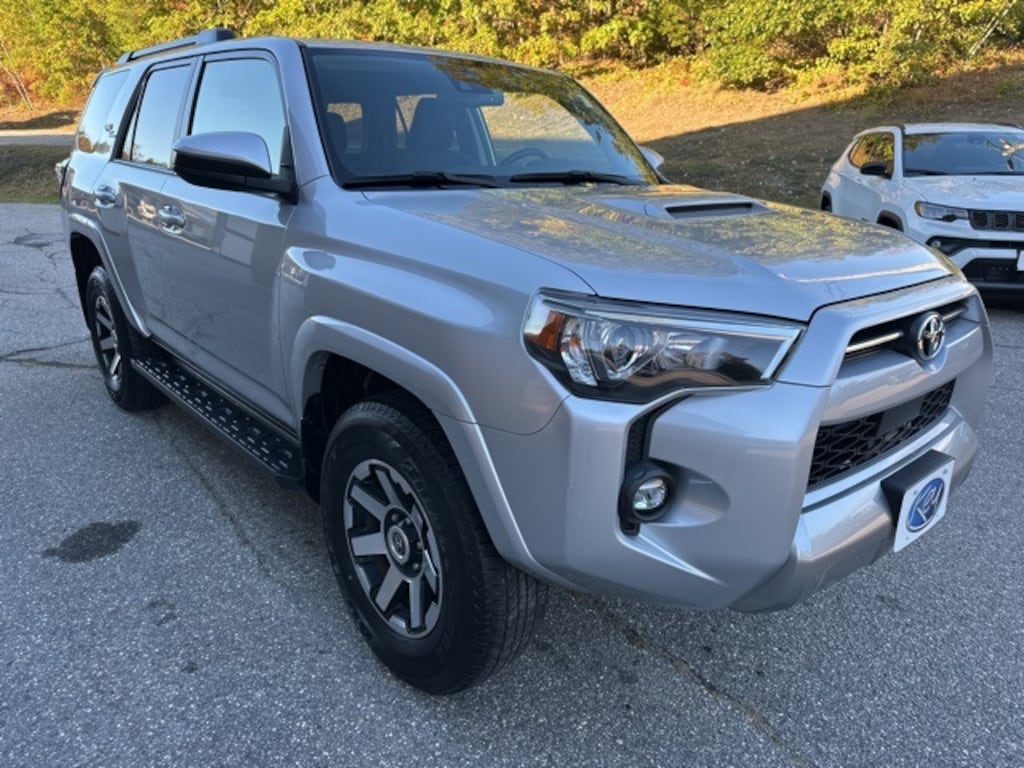 Key Chrysler Dodge Jeep Ram Newcastle is proud to present you with another True Market Priced Pre-Owned Vehicle. Transparent Pricing Of $ 40495 !! This 2024 Toyota 4Runner TRD Off-Road is loaded with the following Factory Options: 4WD and Black/Graphite Cloth 4WD, Black/Graphite Cloth, 3.727 Axle Ratio, 4-Wheel Disc Brakes, 8 Speakers, ABS brakes, Air Conditioning, Alloy wheels, AM/FM radio: SiriusXM, Anti-whiplash front head restraints, Apple CarPlay/Android Auto, Auto High-beam Headlights, Black Roof Rails, Brake assist, Bumpers: body-color, Compass, Driver door bin, Driver vanity mirror, Dual front impact airbags, Dual front side impact airbags, Electronic Stability Control, Emergency communication system: Safety Connect (1-year trial), Exterior Parking Camera Rear, Fabric Seat Trim, Front anti-roll bar, Front Bucket Seats, Front Center Armrest, Front fog lights, Front reading lights, Front wheel independent suspension, Heated door mirrors, Illuminated entry, Knee airbag, Leather Shift Knob, Low tire pressure warning, Occupant sensing airbag, Outside temperature display, Overhead airbag, Overhead console, Panic alarm, Passenger door bin, Passenger vanity mirror, Power door mirrors, Power driver seat, Power steering, Power windows, Radio: Audio Plus, Rear anti-roll bar, Rear seat center armrest, Rear window defroster, Rear window wiper, Remote keyless entry, Security system, Speed control, Speed-sensing steering, Split folding rear seat, Spoiler, Steering wheel mounted audio controls, Tachometer, Telescoping steering wheel, Tilt steering wheel, Traction control, Trip computer, Variably intermittent wipers, and Wheels: 17" Unique 7-Spoke Off-Road Alloy!!